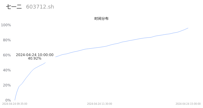 根据成交分布分析,该股票当天缩量成交,成交清淡。时间上看,早盘前半小时成交量占据当天总成交量的40.92%;价格上看,成交呈现中间峰。成交分布分析主要研究股票成交的分布特性,不具有预测功能,请知悉。