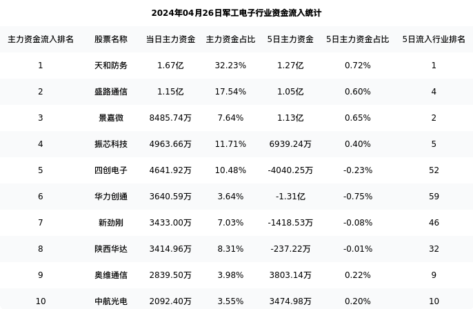 从主力资金流向来看,军工电子行业今日主力资金流入52.72亿元,在所有申万二级行业中排名:61/131。
