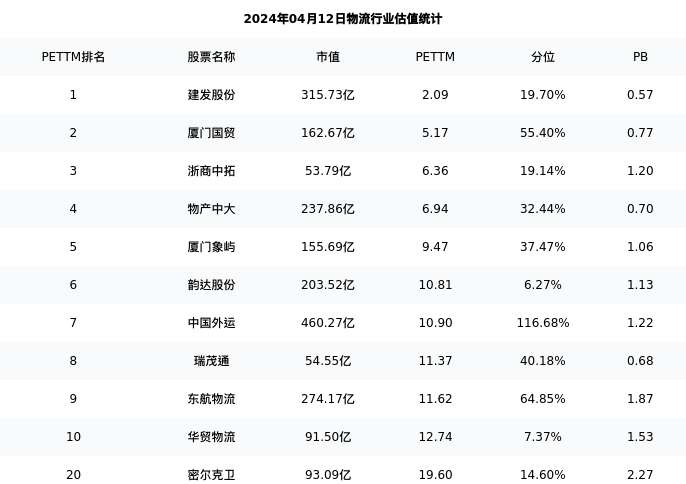 从估值角度看:密尔克卫最新市盈率PETTM为19.60,在行业内排名20/45,处于14.60分位。
