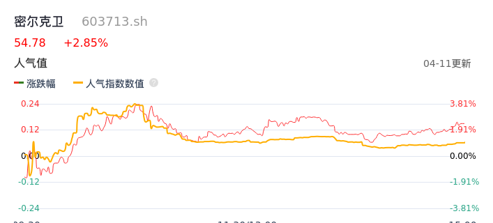 04月11日,密尔克卫收报54.78,股价涨幅2.85%,成交金额1.94亿元,换手率2.18%。