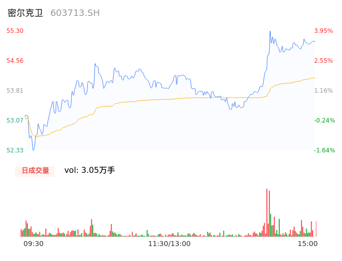 04月22日,密尔克卫收报55.05,股价涨幅3.48%,成交金额1.65亿元,换手率1.86%。