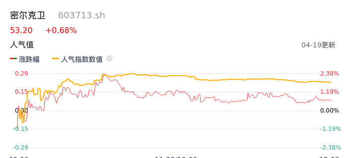 04月19日,密尔克卫收报53.20,股价涨幅0.68%,成交金额9573.62万元,换手率1.09%。