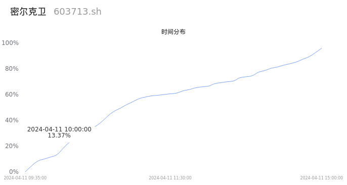 603713密尔克卫2024年04月11日成交3.58万手,成交金额1.94亿元,相较昨日放量9774手,换手率2.18%,成交清淡。