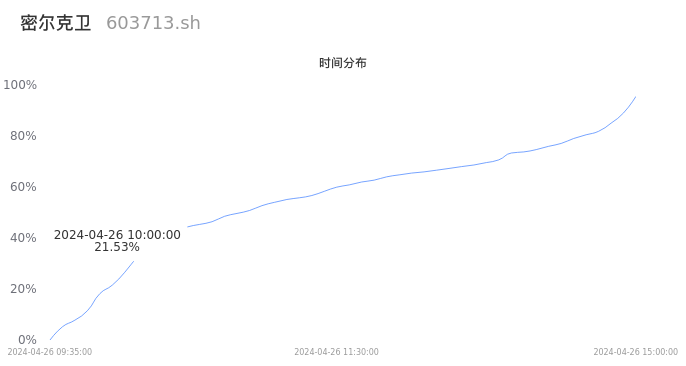 根据成交分布分析,该股票当天放量成交,成交清淡。时间上看,早盘前半小时成交量占据当天总成交量的21.53%;价格上看,成交呈现中间峰。成交分布分析主要研究股票成交的分布特性,不具有预测功能,请知悉。