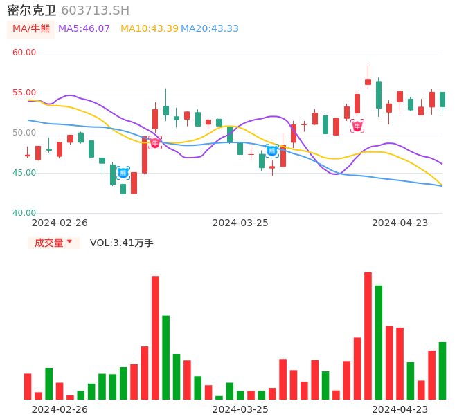 值得注意的是:2024年04月国泰君安的钟浩/沈唯分析师,首次发布关于密尔克卫的研究报告,标题为:密尔克卫(603713):Q1业绩符合预期 打造中国密度建设。