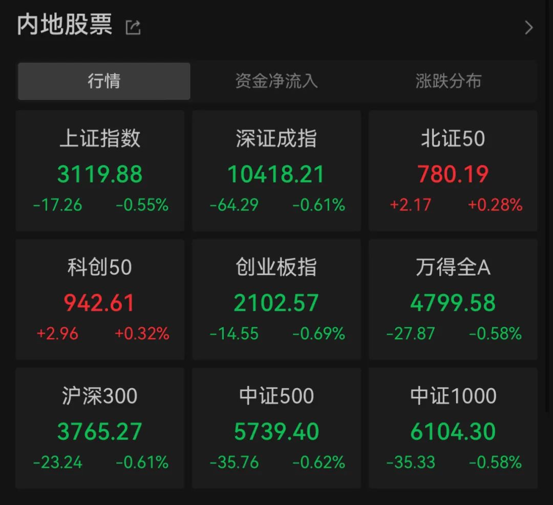 8月收官日,大盘全天震荡调整,三大指数均小幅下跌。板块方面,光刻胶、Chiplet、中药、医药商业等板块涨幅居前,房地产、证券、新型城镇化、互联网金融等板块跌幅居前。