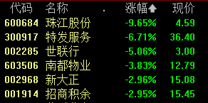 本周初涨势较好的房地产板块开始调整。房地产开发、房地产服务板块大跌,中华企业、首开股份、中迪投资等多股跌停,珠江股份逼近跌停。