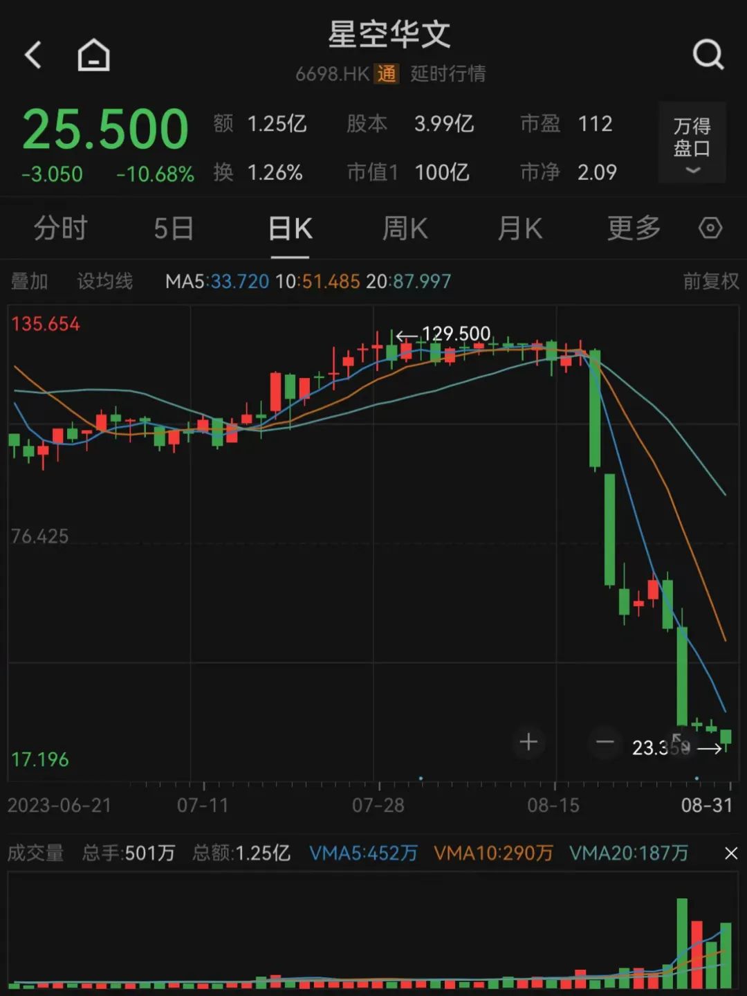 星空华文股价破发