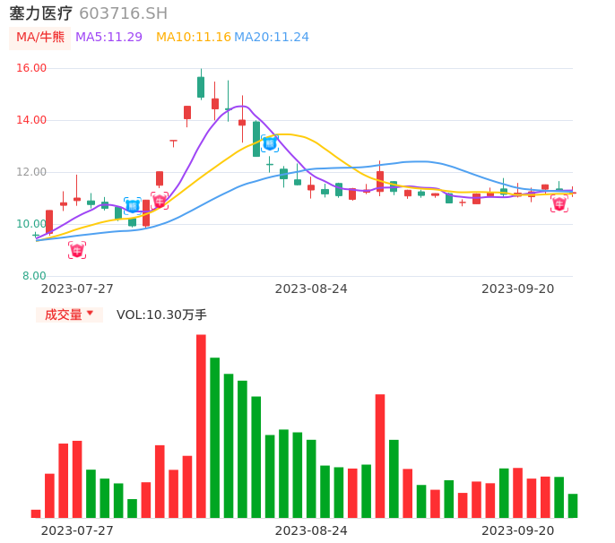 09月20日,塞力医疗收报11.21,股价涨幅-0.88%,成交金额1.16亿元,换手率5.11%。