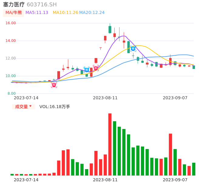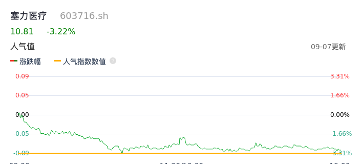 09月07日,塞力医疗收报10.81,股价涨幅-3.22%,成交金额1.77亿元,换手率8.04%。