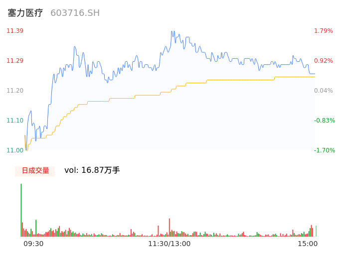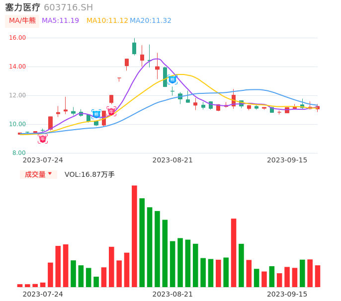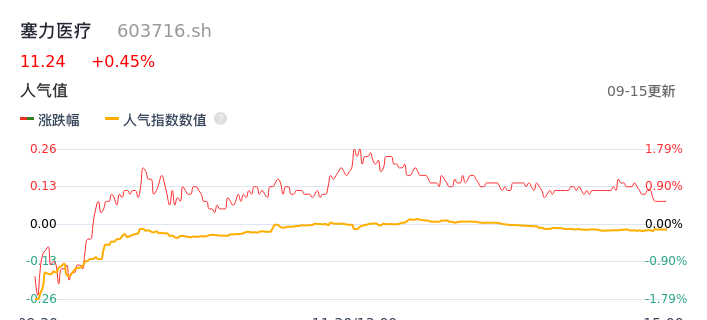 09月15日,塞力医疗收报11.24,股价涨幅0.45%,成交金额1.90亿元,换手率8.38%。