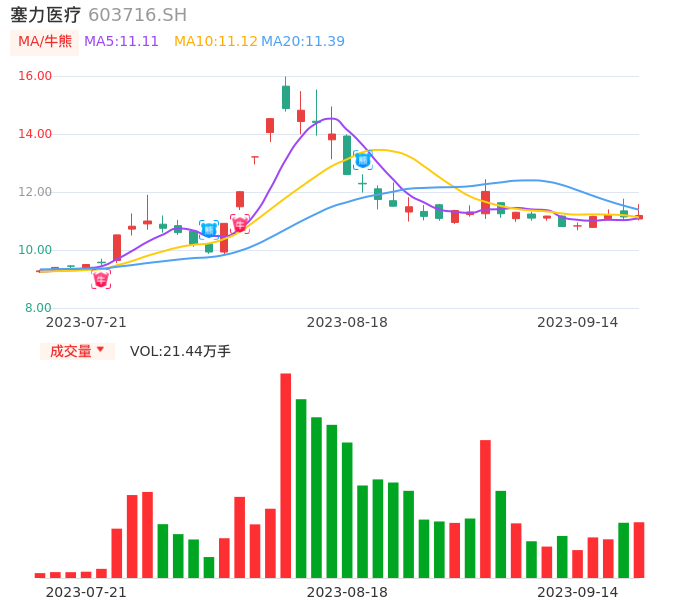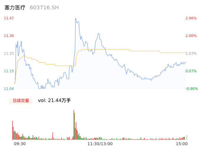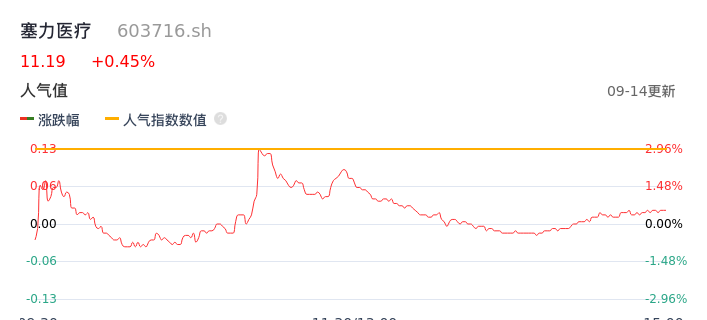 09月14日,塞力医疗收报11.19,股价涨幅0.45%,成交金额2.41亿元,换手率10.65%。