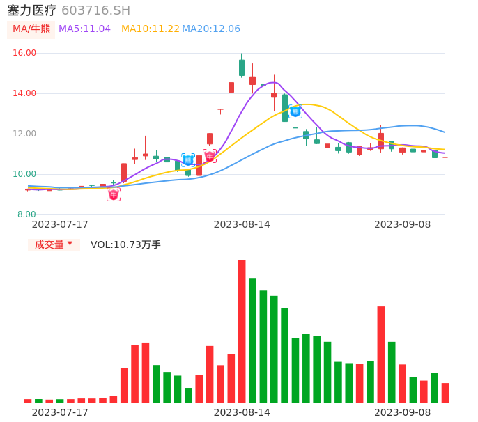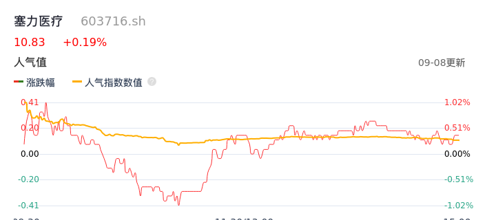 09月08日,塞力医疗收报10.83,股价涨幅0.19%,成交金额1.16亿元,换手率5.33%。