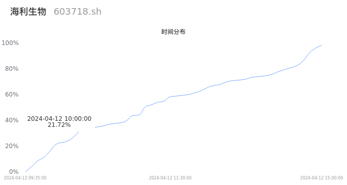 603718海利生物2024年04月12日成交5.30万手,成交金额4543.35万元,相较昨日放量1.01万手,换手率0.82%,成交清淡。