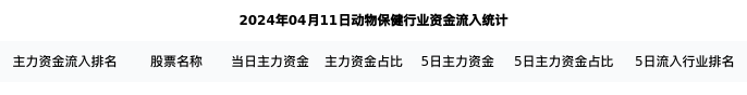 从主力资金流向来看,动物保健行业今日主力资金流入1.45亿元,在所有申万二级行业中排名:65/131。