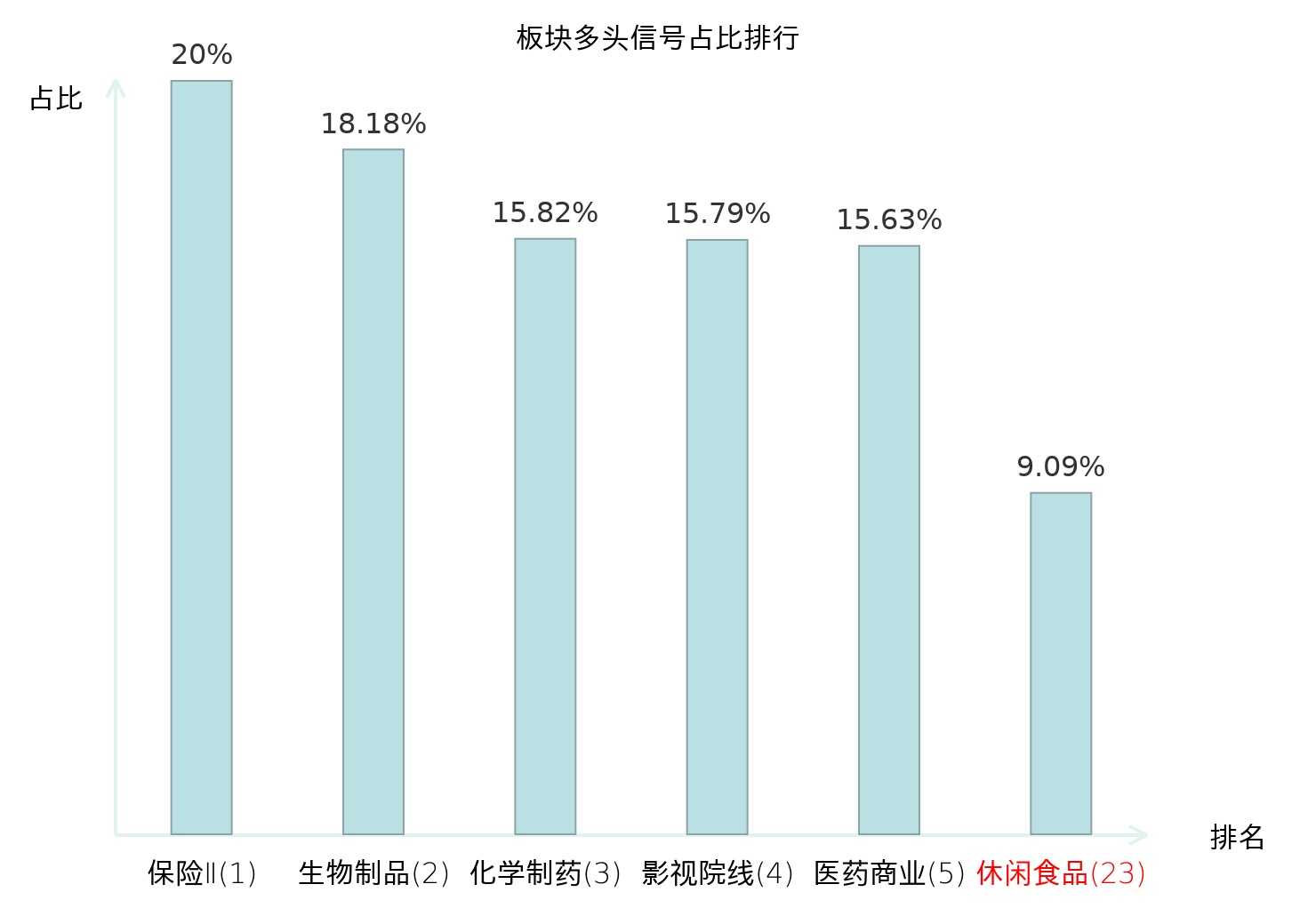 全市场所有行业板块中主力多头信号占比排名中,保险Ⅱ板块位居第一。保险Ⅱ板块名次提升最快,较昨日上升125位。