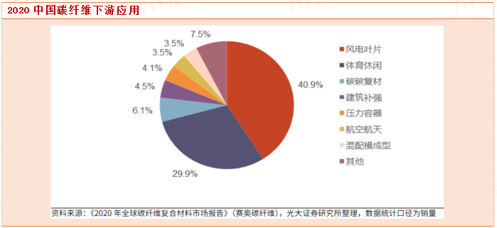根据赛奥碳纤维统计数据,2020年中国碳纤维下游应用中,风电叶片占比最大,达40.9%。2020年中国风电叶片碳纤维的总需求量为3.06万吨,预计2025年需求量将增至9.34万吨,CAGR高达25%。同时,由于碳纤维需求量持续提升,上游关键原料丙烯腈也值得关注。