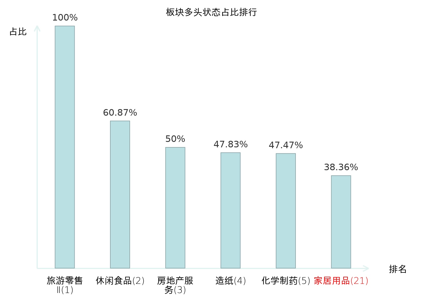 全市场所有行业板块中主力多头状态占比排名中,旅游零售Ⅱ板块位居第一。种植业板块名次提升最快,较昨日上升49位。