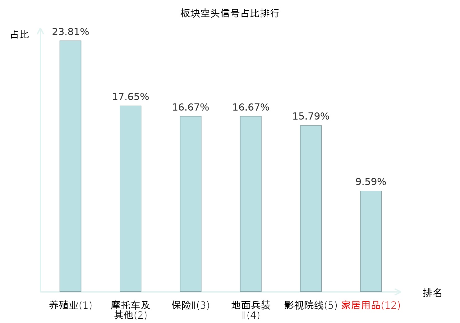全市场所有行业板块中主力空头信号占比排名中,养殖业板块位居第一。养殖业板块名次提升最快,较昨日上升114位。