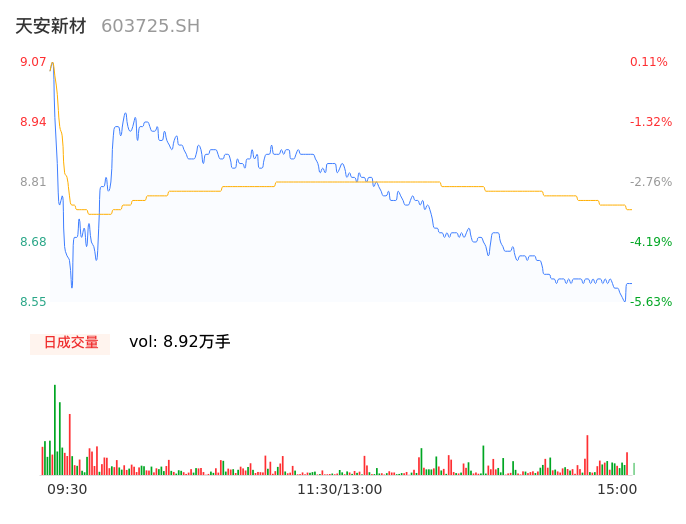 04月22日,天安新材收报8.57,股价涨幅-5.41%,成交金额7808.36万元,换手率4.35%。