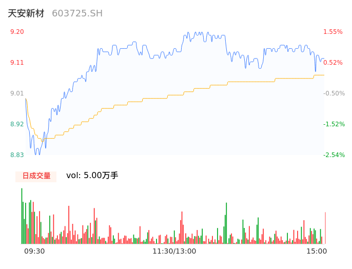 04月26日,天安新材收报9.14,股价涨幅0.88%,成交金额4536.39万元,换手率2.44%。