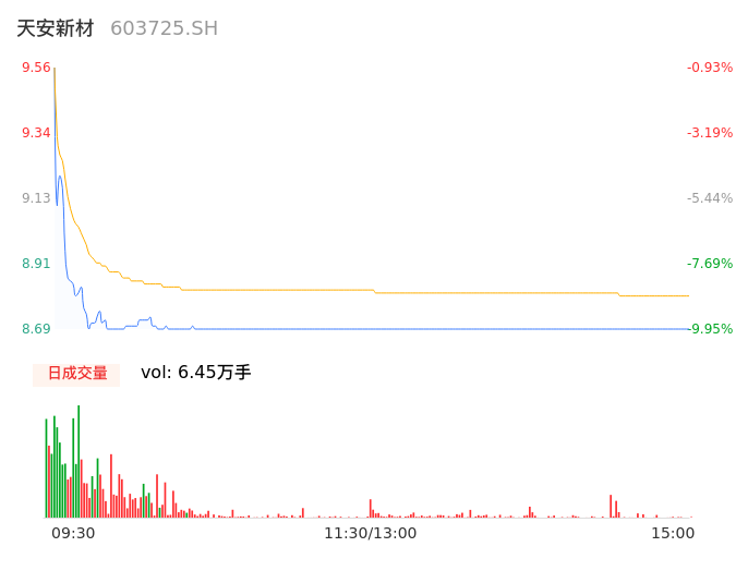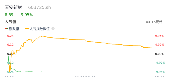 04月16日,天安新材收报8.69,股价涨幅-9.95%,成交金额5681.52万元,换手率3.14%。