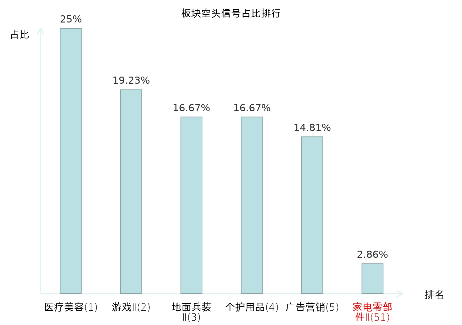 全市场所有行业板块中主力空头信号占比排名中,医疗美容板块位居第一。游戏Ⅱ板块名次提升最快,较昨日上升122位。