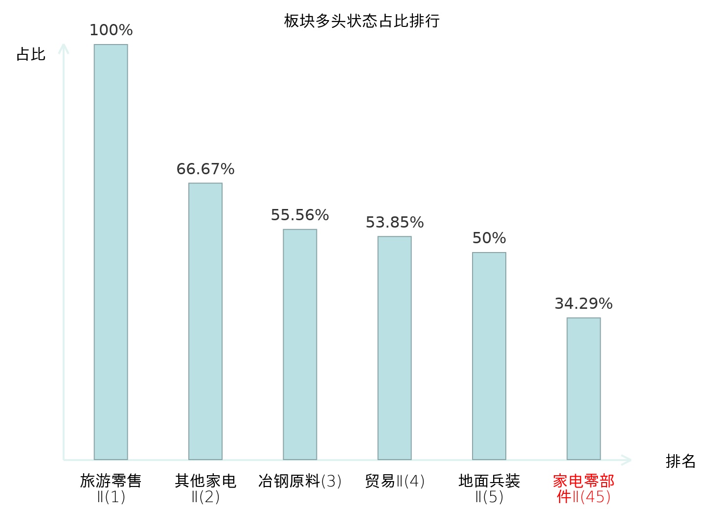 从主力宝信号数据分析,朗迪集团所属的家电零部件Ⅱ板块中共12只股票处于主力多头状态,主力多头状态占比在全行业中排名第45位,较昨日下降2位。较高的排名表明主力对于该板块整体看多意愿较强,此次排名下降可能反映了主力对该板块态度的微调。全市场所有行业板块中,旅游零售Ⅱ板块主力多头状态占比最高,位居第一;房屋建设Ⅱ板块名次提升最快,较昨日上升58位。这些变动揭示了主力资金在不同行业间的偏好变化,为投资者提供了关于市场情绪和潜在投资机会的重要线索。