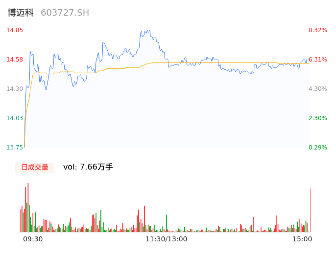 04月19日,博迈科收报14.58,股价涨幅6.35%,成交金额1.11亿元,换手率2.72%。