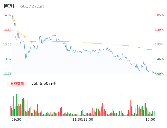 04月16日,博迈科收报13.15,股价涨幅-7.00%,成交金额8910.44万元,换手率2.34%。