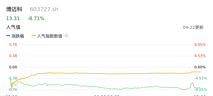 04月22日,博迈科收报13.31,股价涨幅-8.71%,成交金额1.13亿元,换手率2.96%。