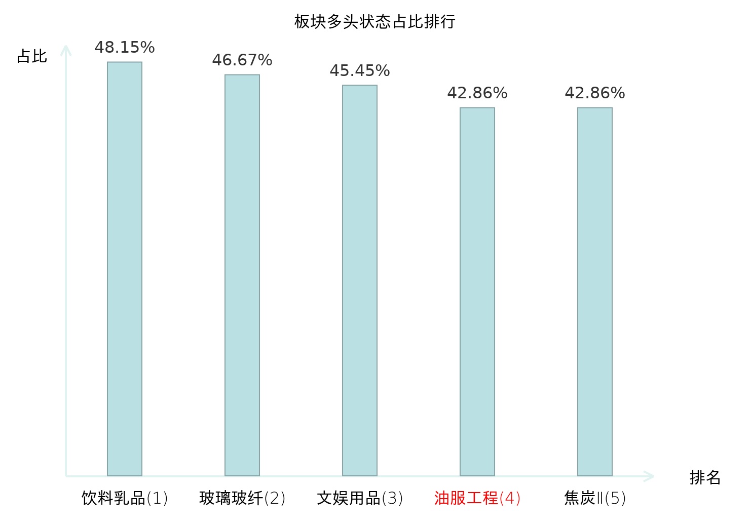 全市场所有行业板块中主力多头状态占比排名中,饮料乳品板块位居第一。商用车板块名次提升最快,较昨日上升77位。