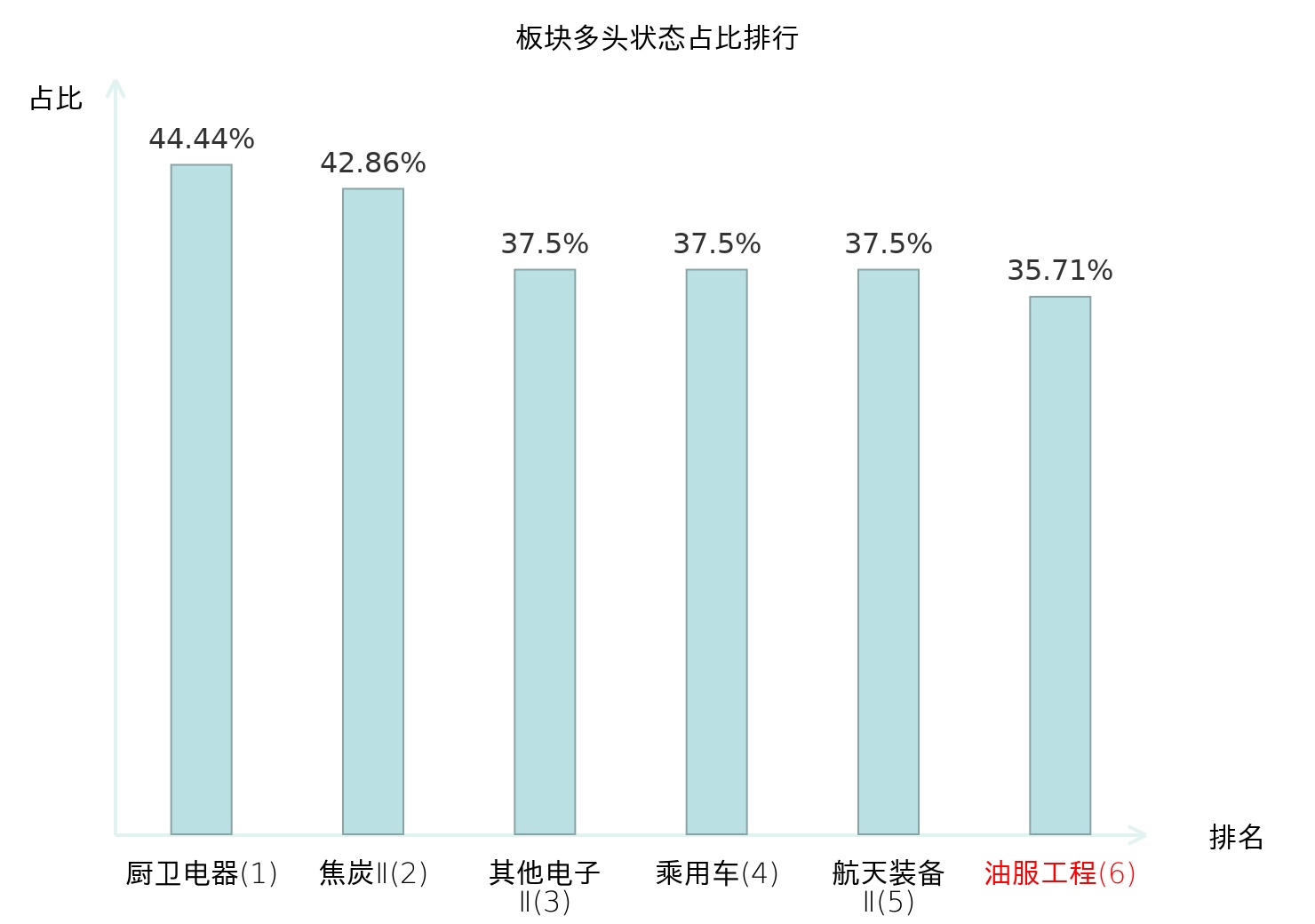 全市场所有行业板块中主力多头状态占比排名中,厨卫电器板块位居第一。元件板块名次提升最快,较昨日上升69位。