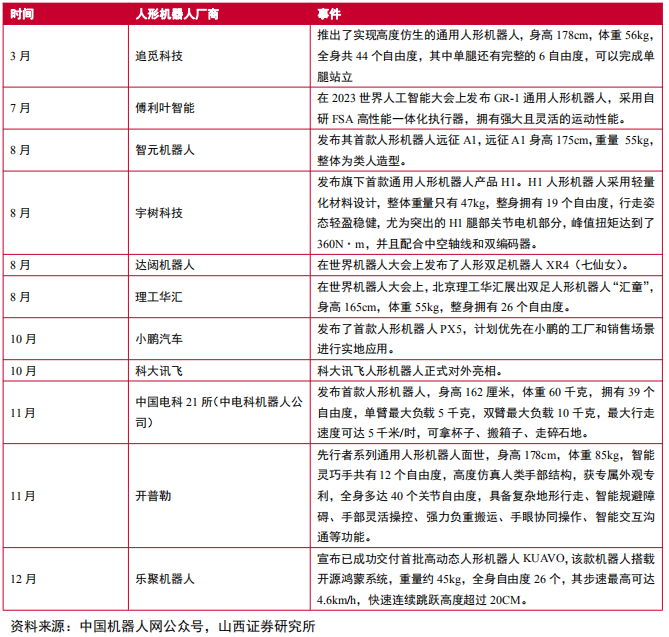 2023年国产人形机器人发布10余款新机