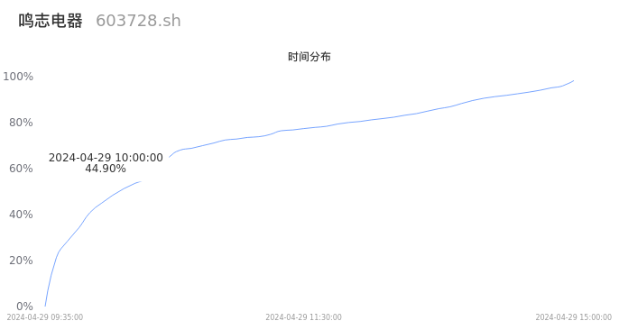 根据成交分布分析,该股票当天放量成交,成交清淡。时间上看,早盘前半小时成交量占据当天总成交量的44.9%;价格上看,成交呈现右偏峰。成交分布分析主要研究股票成交的分布特性,不具有预测功能,请知悉。