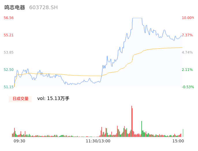 04月23日,鸣志电器收报55.00,股价涨幅6.96%,成交金额8.21亿元,换手率3.61%。