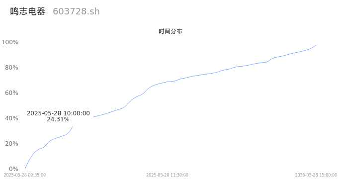 603728鸣志电器2025年05月28日成交4.59万手,成交金额2.60亿,相较昨日缩量3404手,换手率1.10%,成交清淡。