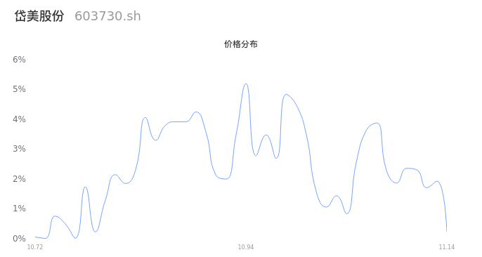 根据成交分布分析,该股票当天放量成交,成交清淡。时间上看,早盘前半小时成交量占据当天总成交量的23.98%;价格上看,成交呈现中间峰。成交分布分析主要研究股票成交的分布特性,不具有预测功能,请知悉。
