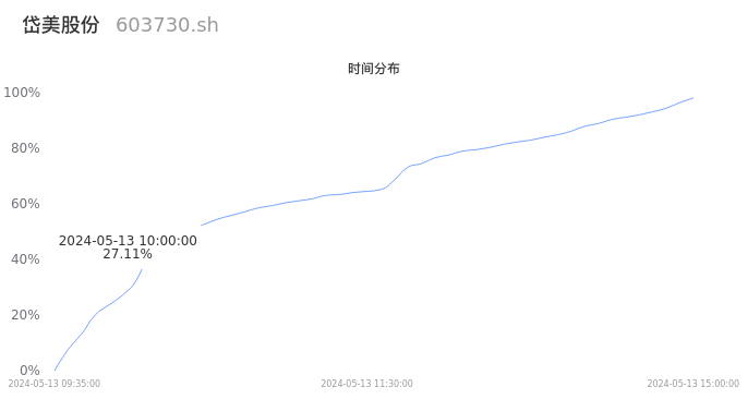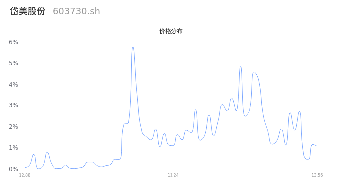 根据成交分布分析,该股票当天放量成交,成交清淡。时间上看,早盘前半小时成交量占据当天总成交量的27.11%;价格上看,成交呈现中间峰。成交分布分析主要研究股票成交的分布特性,不具有预测功能,请知悉。