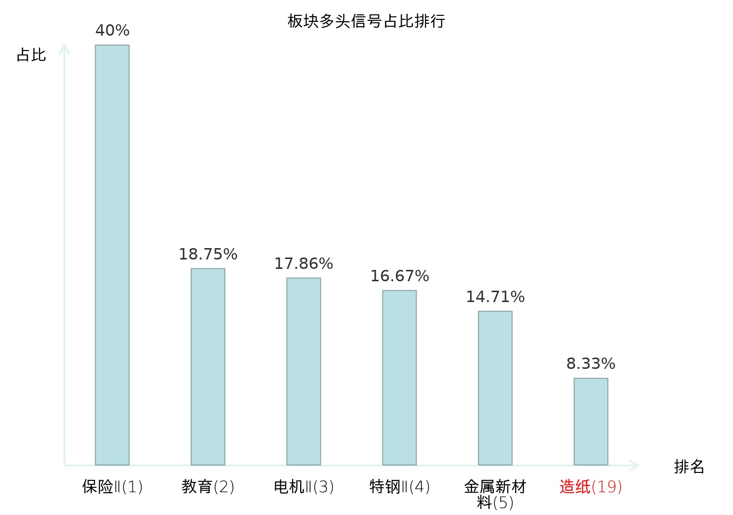 全市场所有行业板块中主力多头信号占比排名中,保险Ⅱ板块位居第一。保险Ⅱ板块名次提升最快,较昨日上升124位。