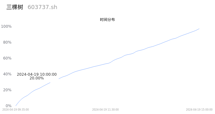 603737三棵树2024年04月19日成交4.58万手,成交金额1.39亿元,相较昨日放量528手,换手率0.87%,成交清淡。