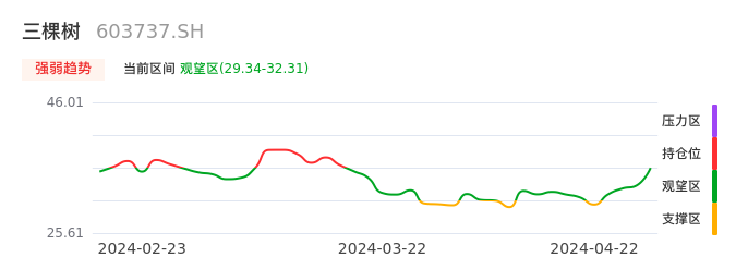 04月22日,三棵树收报32.29,股价涨幅5.21%,成交金额3.34亿元,换手率2.00%。