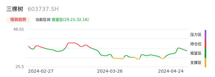 04月24日,三棵树收报31.31,股价涨幅-1.54%,成交金额1.17亿元,换手率0.71%。
