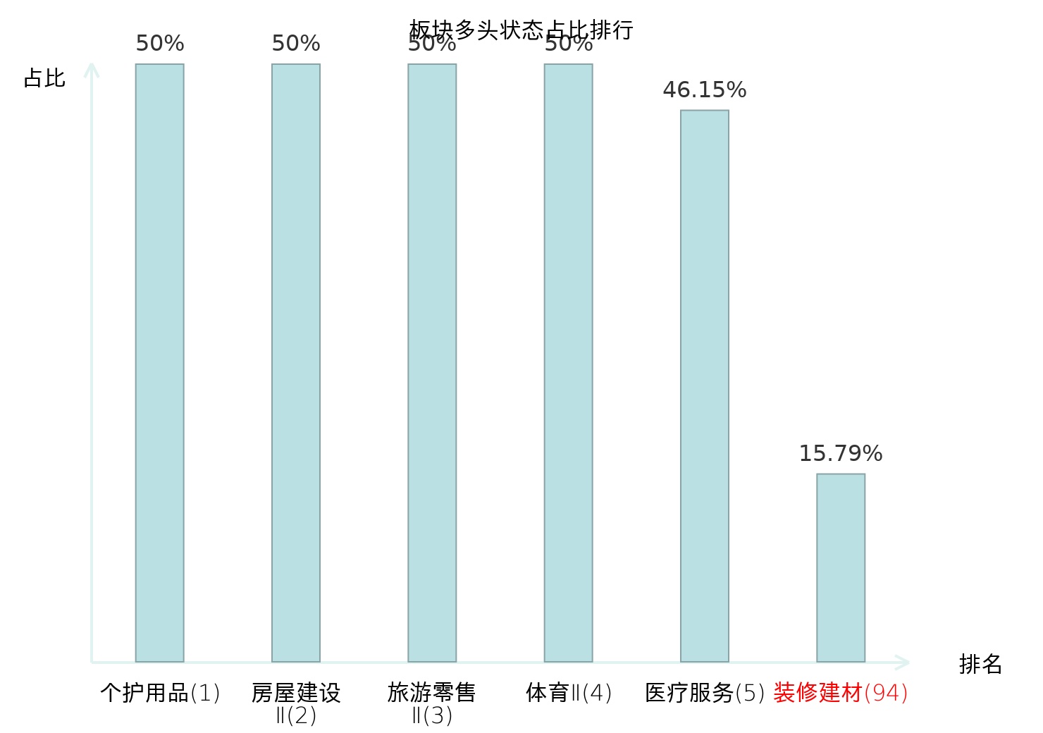 全市场所有行业板块中主力多头状态占比排名中,个护用品板块位居第一。影视院线板块名次提升最快,较昨日上升56位。