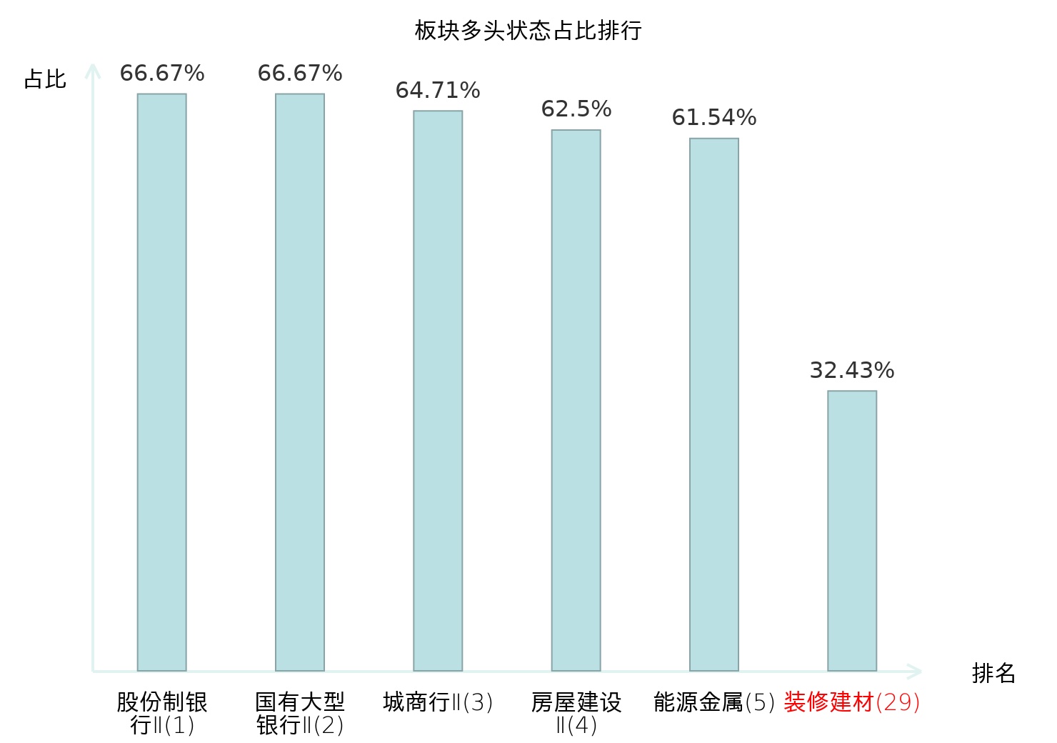 全市场所有行业板块中主力多头状态占比排名中,股份制银行Ⅱ板块位居第一。其他家电Ⅱ板块名次提升最快,较昨日上升102位。