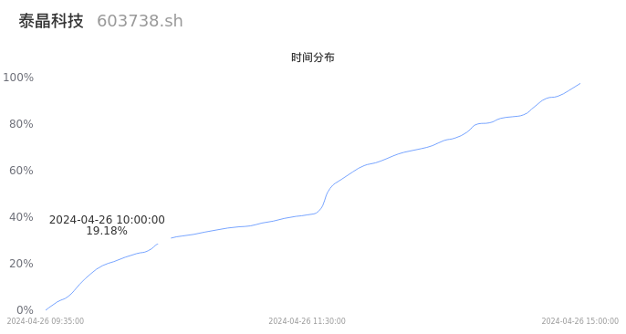 603738泰晶科技2024年04月26日成交6.33万手,成交金额8557.34万元,相较昨日放量1.86万手,换手率1.63%,成交清淡。