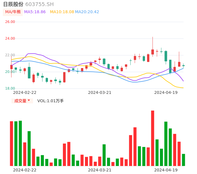 04月19日,日辰股份收报20.70,股价涨幅-2.22%,成交金额2077.14万元,换手率1.02%。