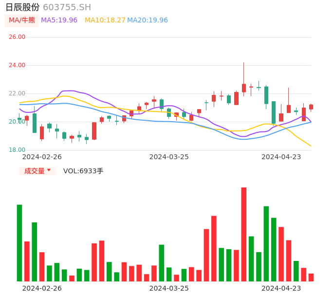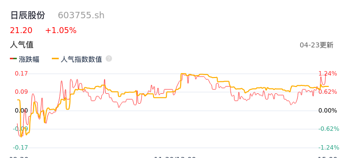 04月23日,日辰股份收报21.20,股价涨幅1.05%,成交金额1460.92万元,换手率0.70%。