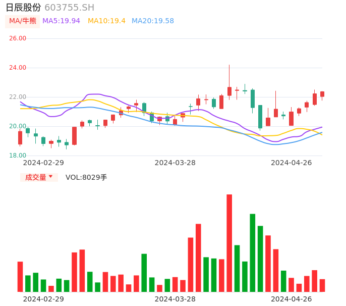 04月26日,日辰股份收报22.36,股价涨幅0.63%,成交金额1782.51万元,换手率0.81%。