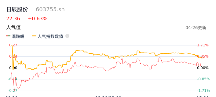 04月26日,日辰股份收报22.36,股价涨幅0.63%,成交金额1782.51万元,换手率0.81%。